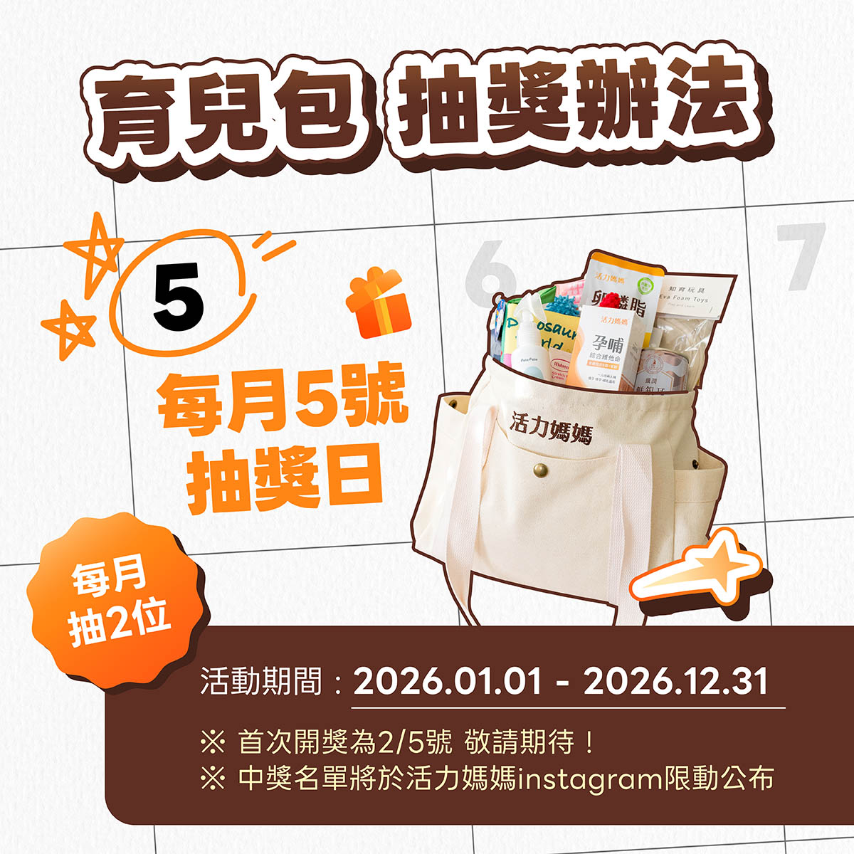 【2026媽媽禮】活力媽媽月月抽超值育兒包|價值超過3500等你抽 !