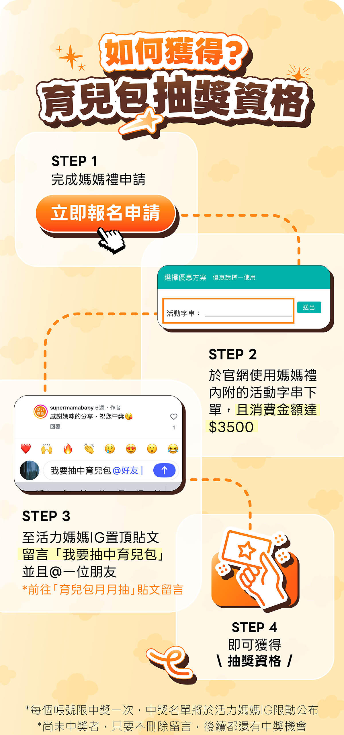 - 如下單未使用活動字串,即無育兒包抽獎資格,敬請見諒。