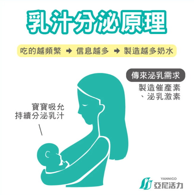 寶寶吸吮會刺激乳腺,促進泌乳激素(催乳素)分泌。親餵越頻繁,乳汁供需循環越順暢,奶量越穩定。