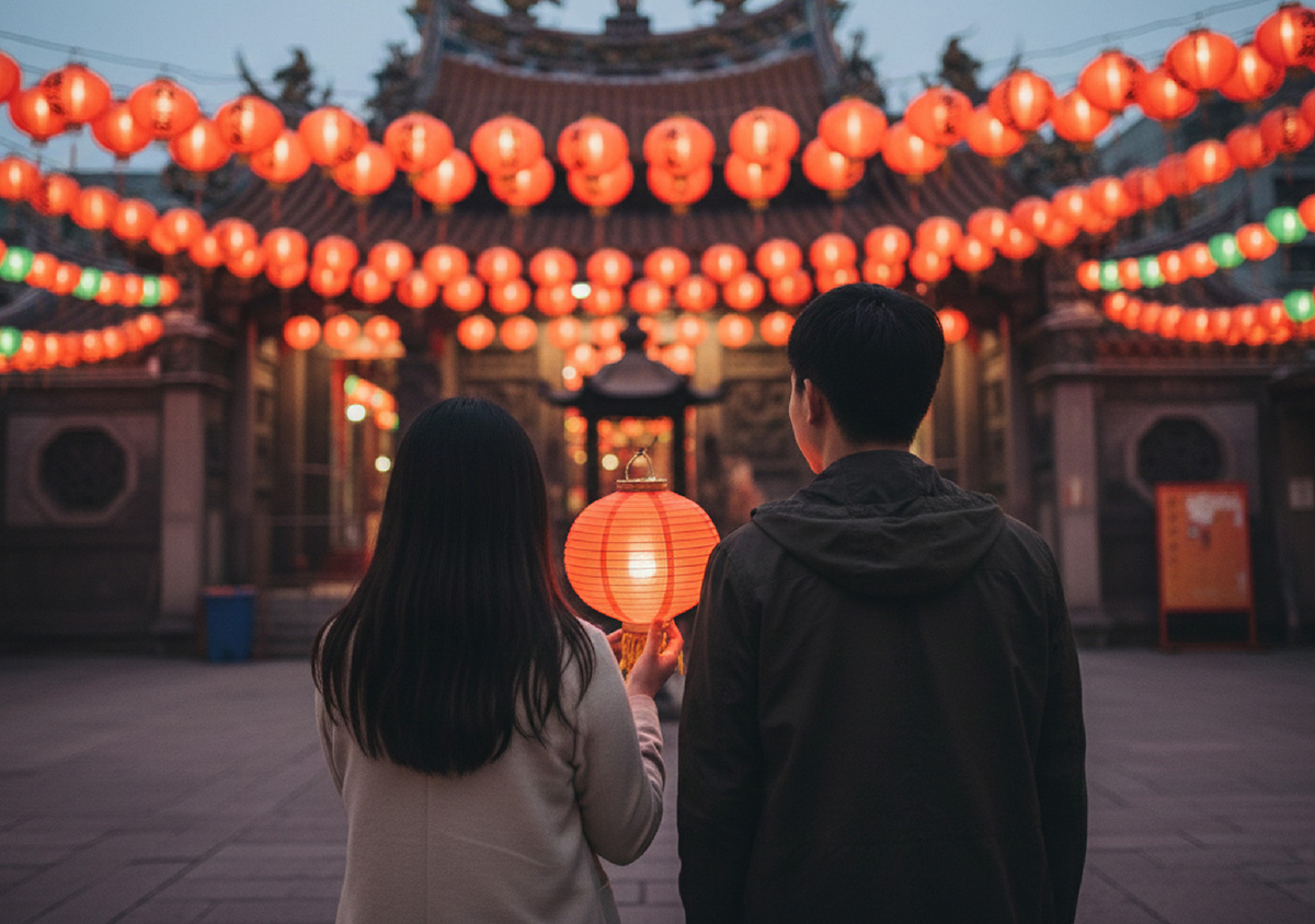 - 做法: 夫妻牽手一同從花燈下走過,象徵祈求神明保佑,早生貴子。