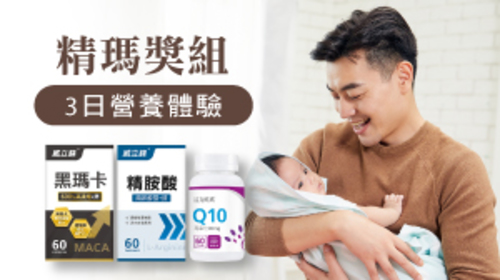 威立鋒黑瑪卡+鋅、精胺酸(精氨酸)活力膠囊、輔酶Q10,專為男性孕前營養打造的維他命組合,現在立馬點擊索取試用!